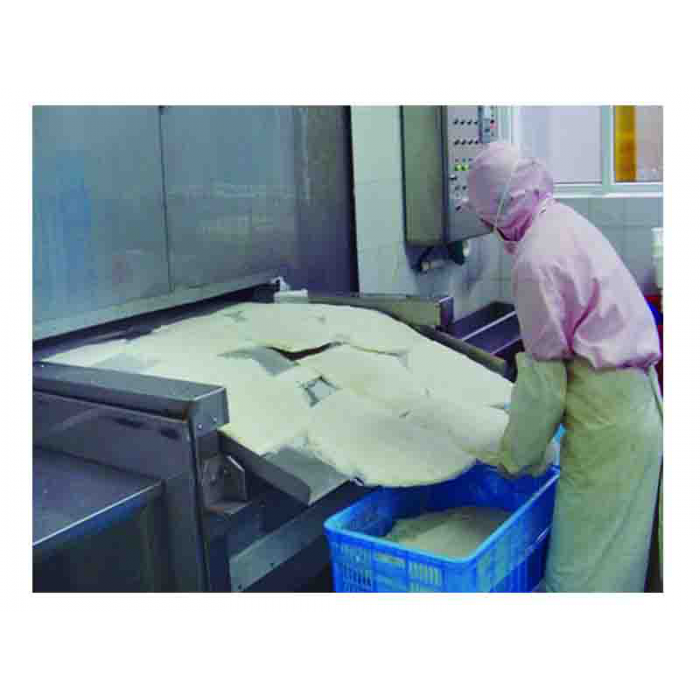 板带式速冻机是用不锈钢板做传送带,将被冻的海产品如:无头虾、扇贝柱等放在板带上,通过侧吹风将物料快速冻成单体。本设备主要以加工海产品为主。冻结时可选范围为10-100分钟。